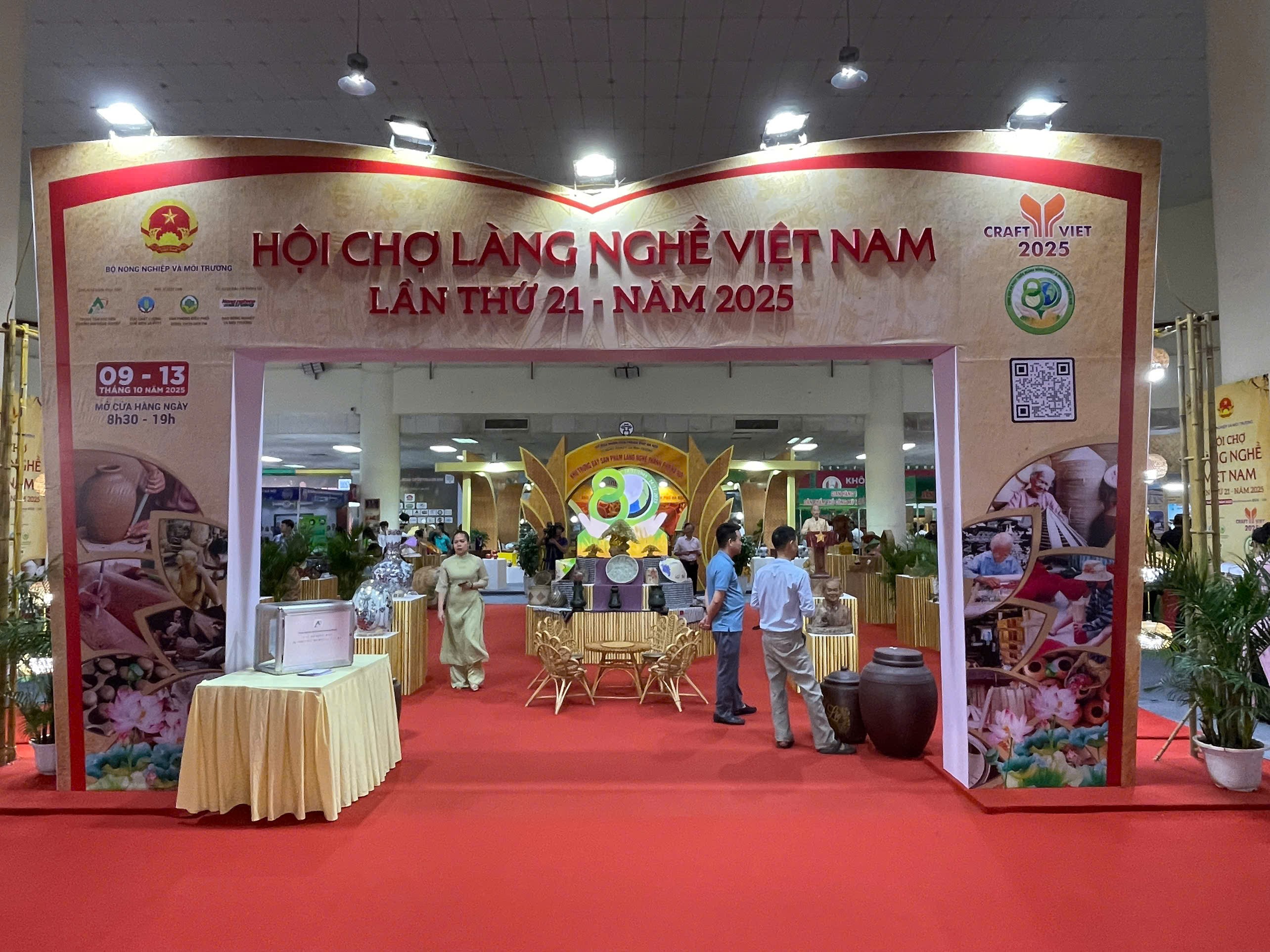 Với quy mô khoảng 150 gian hàng trên diện tích hơn 1.000m², hội chợ năm nay là bức tranh thu nhỏ của làng nghề Việt, nơi tỏa sáng tài hoa của những nghệ nhân – những người gìn giữ tinh hoa truyền thống qua từng sản phẩm mây tre đan, gốm, đồng, dệt thổ cẩm hay nón lá. Không gian hội chợ rực rỡ sắc màu, tái hiện không khí của những làng nghề trăm năm tuổi như gốm Bát Tràng, lụa Vạn Phúc, mây tre Phú Vinh, đồng Đại Bái, tranh Đông Hồ…