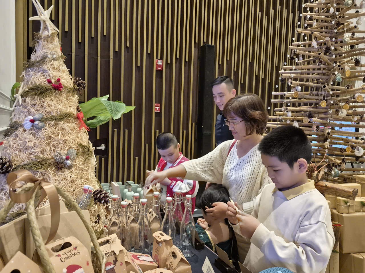 Ông Trương Minh Toàn - Tổng Quản lý khách sạn Potique Nha Trang cho biết: “Chúng tôi chọn tre là vật liệu chính để làm cây thông bởi cây tre vốn rất gần gũi và được xem là biểu tượng cho ý chí của con người Việt Nam. Cùng với đó là sử dụng vỏ ốc, vỏ sò, sao biển… để trang trí cây thông tre nhằm tạo nét đặc trưng, dấu ấn của thành phố biển. Trong khi đó cây thông đèn lồng chính là dấu ấn về văn hóa truyền thống, một nét đặc trưng riêng của Lễ Giáng sinh ở Việt Nam. Cả hai cây thông đều được làm bằng chất liệu thân thiện với môi trường, hướng đến sự phát triển và niềm vui lễ hội vì một môi trường xanh và bền vững”.