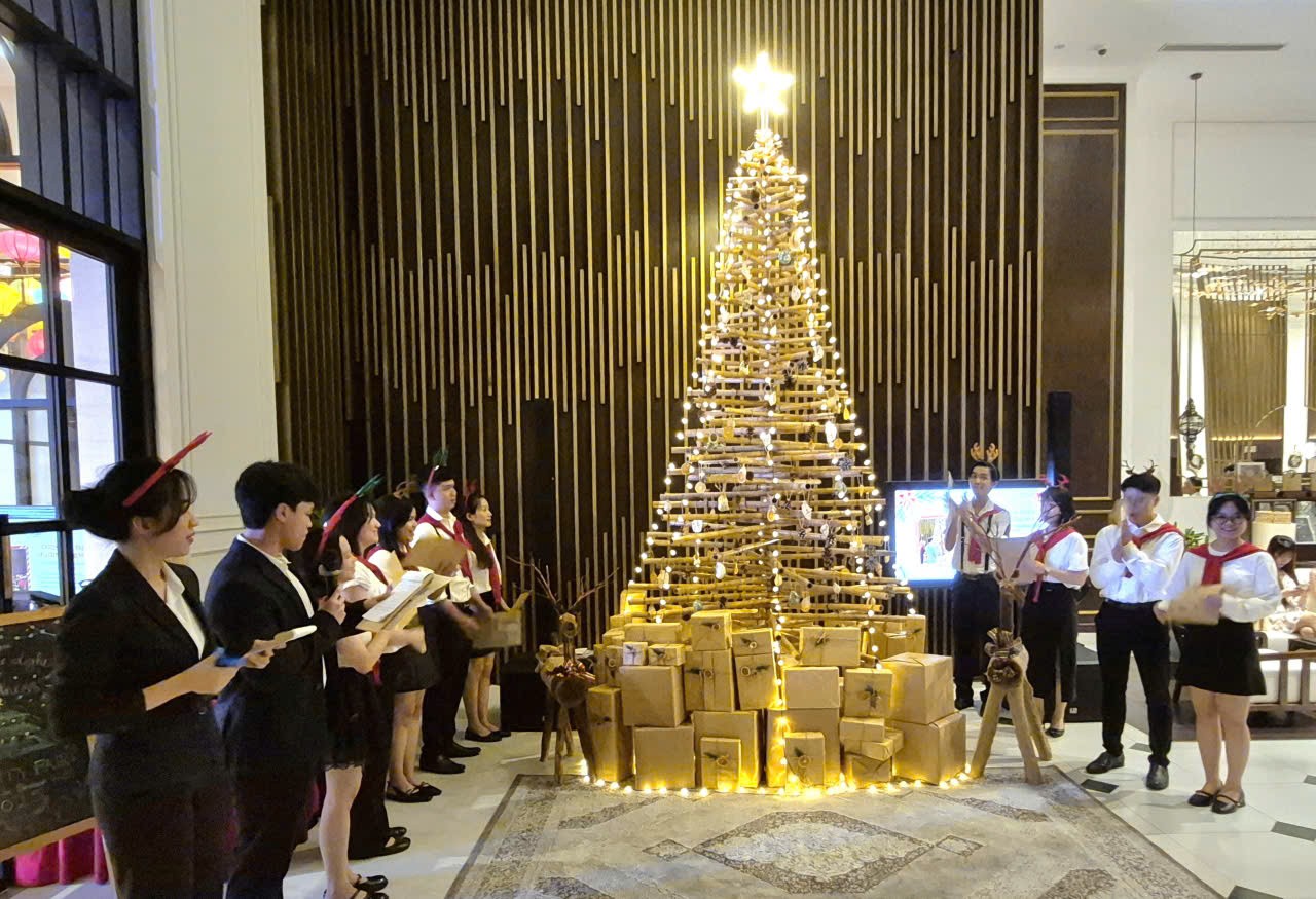 Tại chương trình, dàn đồng ca của khách sạn đã biểu diễn các bài hát, điệu nhảy Giáng sinh sôi động, kết hợp với biểu diễn độc tấu piano trong không gian kiến trúc cổ điển và sang trọng của khách sạn.