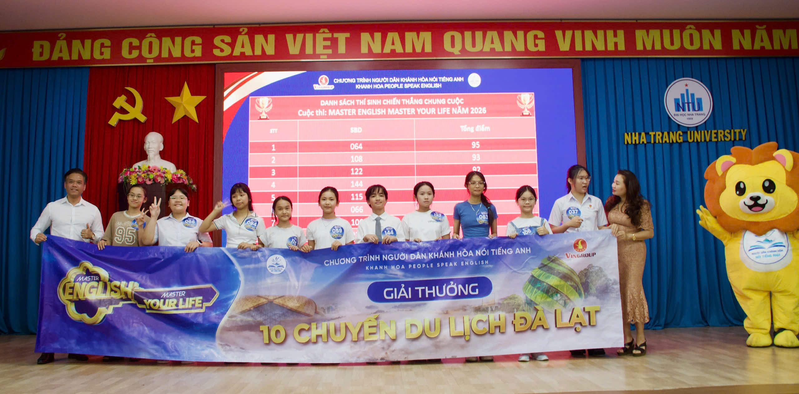 Chiều 19/4/2026, tại Hội trường 1 – Trường Đại học Nha Trang, vòng chung kết cuộc thi “Master English Master Your Life” đã diễn ra trong không khí sôi động, thu hút đông đảo thí sinh và khán giả trên địa bàn Khánh Hòa. Sự kiện không chỉ tạo nên một sân chơi trí tuệ hấp dẫn mà còn khẳng định quyết tâm của địa phương trong việc nâng cao năng lực ngoại ngữ cộng đồng – yếu tố then chốt để phát triển du lịch bền vững.