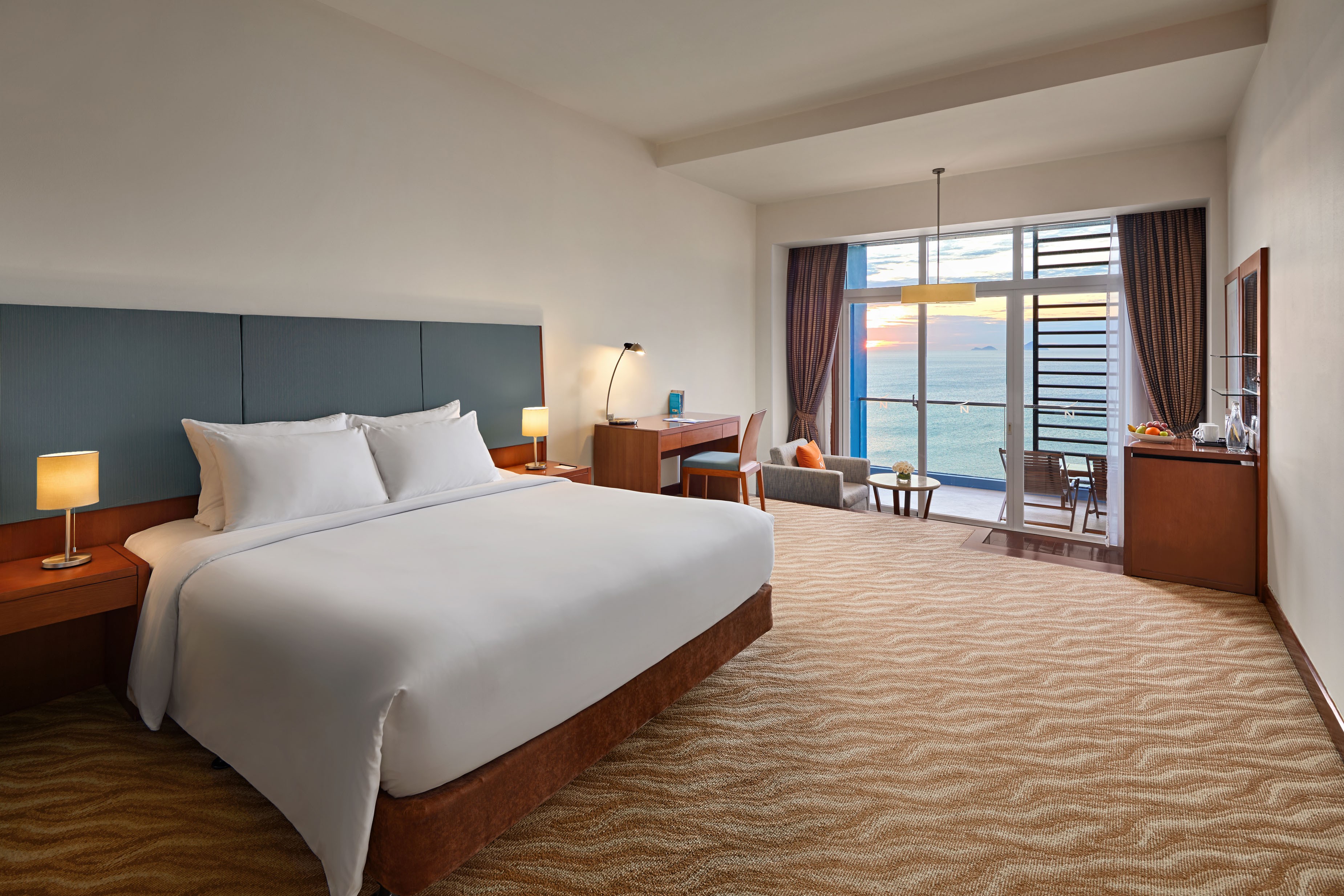 Lợi thế nổi bật của khách sạn nằm ở hệ thống phòng nghỉ 100% hướng biển, mang đến tầm nhìn khoáng đạt ra Vịnh Nha Trang. Với khách MICE, đây không đơn thuần là nơi lưu trú mà còn là “không gian tái tạo năng lượng”, nơi mỗi buổi sớm hay chiều muộn bên ban công đều góp phần cân bằng cảm xúc sau những giờ làm việc căng thẳng.