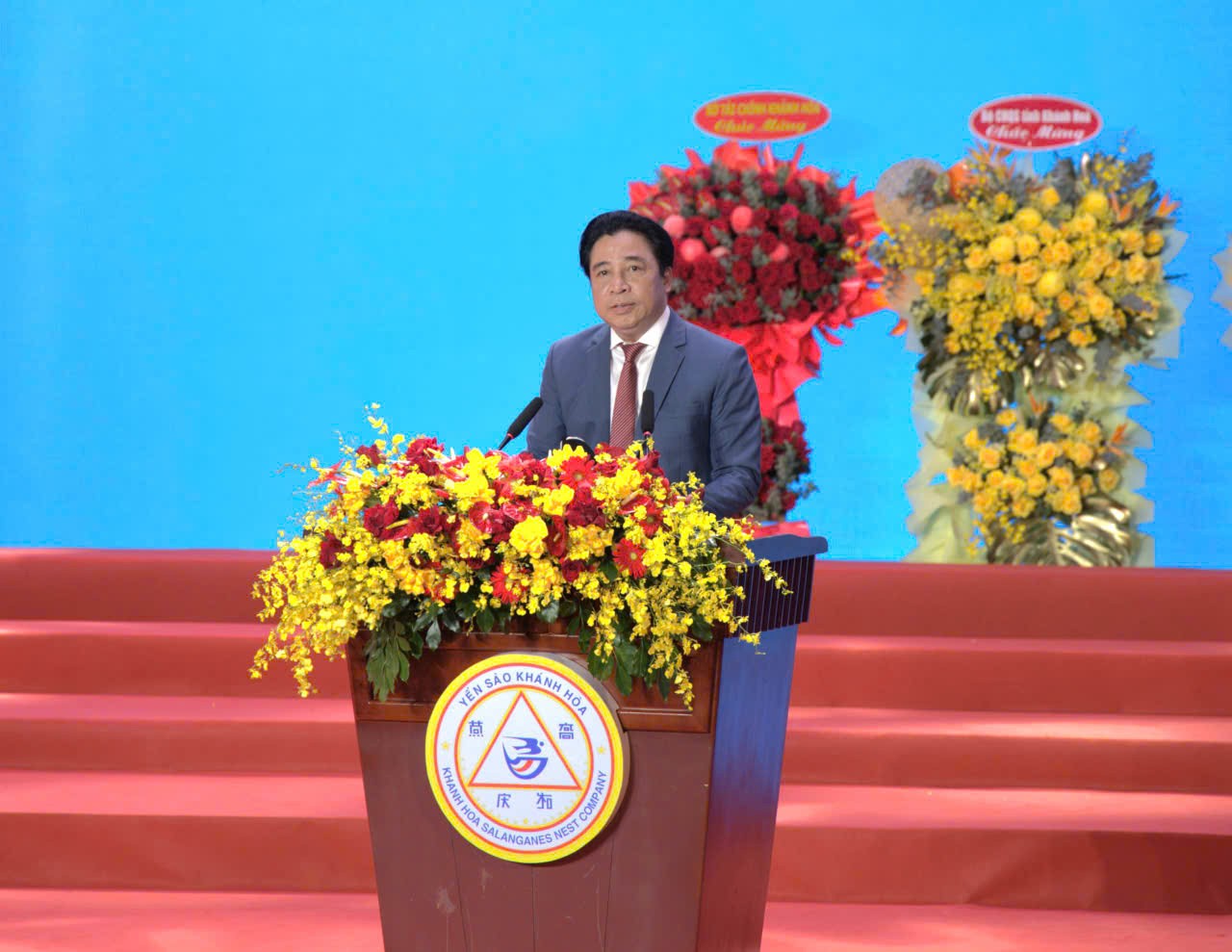 Phát biểu tại buổi lễ, ông Nguyễn Khắc Toàn – Phó Bí thư Tỉnh ủy, Chủ tịch UBND tỉnh Khánh Hòa: “Ghi nhận và biểu dương những đóng góp to lớn của tập thể lãnh đạo, cán bộ, công nhân viên Công ty qua các thời kỳ – những con người đã bền bỉ cống hiến, xây dựng và phát triển thương hiệu Yến sào Khánh Hòa trở thành niềm tự hào của quê hương “Xứ Trầm – Biển Yến”. Trải qua hơn ba thập kỷ, Yến sào Khánh Hòa không chỉ là doanh nghiệp tiêu biểu của tỉnh mà còn là biểu tượng văn hóa – kinh tế, góp phần khẳng định vị thế thương hiệu Khánh Hòa trên bản đồ du lịch và thương mại quốc tế. Với hơn 33 đảo yến, 173 hang yến, doanh nghiệp đã vươn lên trở thành “cánh chim đầu đàn” của ngành yến Việt Nam, được Tổ chức Kỷ lục Châu Á công nhận là đơn vị có sản lượng khai thác yến sào thiên nhiên lớn nhất châu lục”.