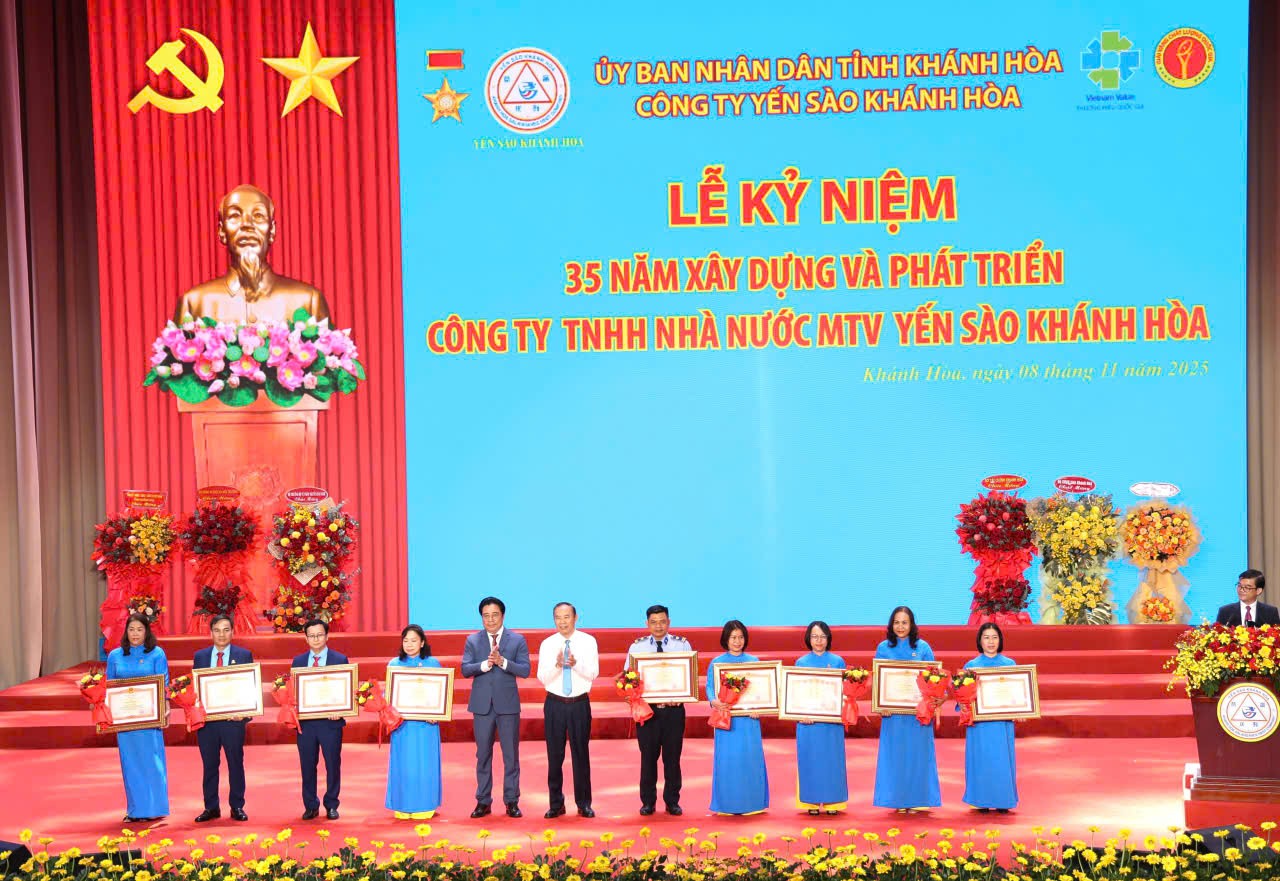 Sáng ngày 8/11/2025, tại Cung Văn hóa Thiếu nhi tỉnh Khánh Hòa, Công ty Yến sào Khánh Hòa long trọng tổ chức Lễ Kỷ niệm 35 năm Ngày thành lập (9/11/1990 – 9/11/2025). Buổi lễ có sự tham dự của lãnh đạo Bộ Nông nghiệp và Môi trường, lãnh đạo Tỉnh ủy, UBND tỉnh Khánh Hòa, cùng đông đảo đối tác, khách hàng, cựu cán bộ và hơn 700 cán bộ công nhân viên đại diện cho hơn 4.000 lao động toàn hệ thống.